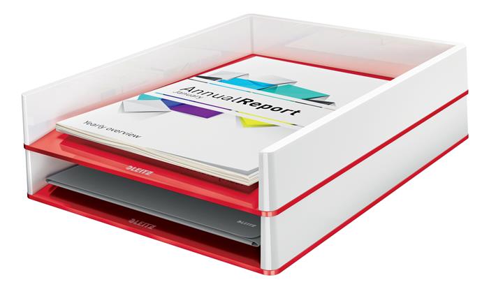 KezdőlapIrodaszerekIratrendezés, archiválásIrattálcák és irattálca kiegészítőkIrattálca, műanyag, kettős színhatású, LEITZ "Wow", piros