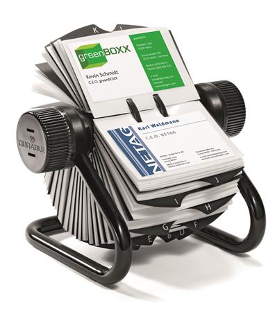 Névjegykártyatartó, fém, 400 db-os, forgatható, fekvő, DURABLE, "VISIFIX®", fekete