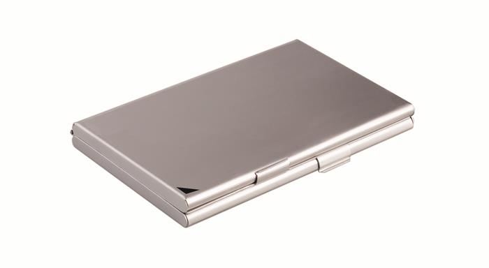 Elegáns, alumínium névjegykártyatartó, matt ezüst felülettel.