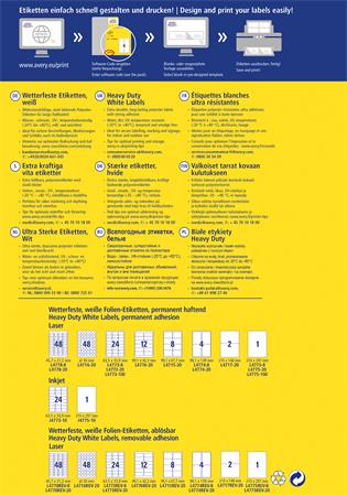 -tervezze meg és nyomtassa ki időjárásálló címkéit gyorsan és egyszerűen - ingyenes szoftverünkért és sablonjainkért látogasson el a www.avery.hu/szoftver weboldalra vagy használja a Microsoft® Office csomagokba beépített sablonjainkat