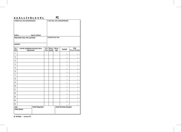 KezdőlapIrodaszerekIrodai papíráruNyomtatványokNyomtatvány, szállítólevél, 25x3, A5, VICTORIA PAPER "B.10-70", 10 tömb/csomag