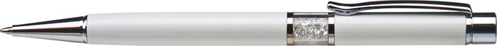 Golyóstoll, fehér, középen fehér SWAROVSKI® kristállyal töltve, 14cm, ART CRYSTELLA®
