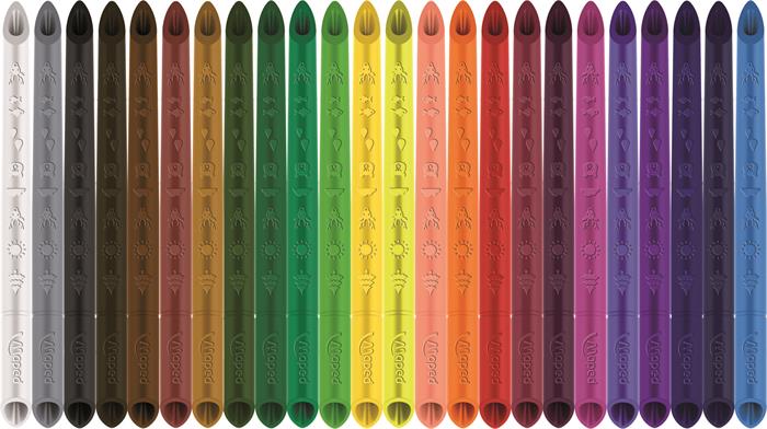 - eredeti és szabadalmaztatott kialakítás, mely lehetővé teszi, hogy a gyerekek mindkét oldalával színezzenek