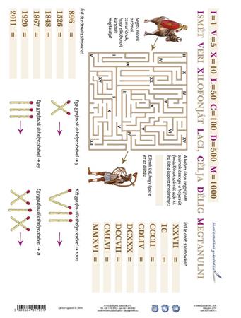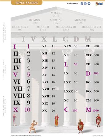 A római számokat gyakoroltató munkalap. Bármilyen kapcsos mappába lefűzhető, a többi tanulói munkalappal együtt gyűjthető, így válnak rendszerezhetővé, áttekinthetővé az alapismeretek. Előnye, hogy dupla oldalas: az egyik oldala tanít, a másik gyakoroltat. A tanuló önmagát is tudja ezáltal ellenőrizni. Mivel vízálló, írható- letörölhető a felülete, újra és újra használható.