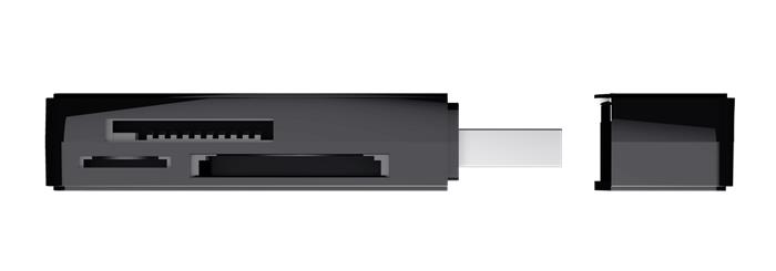 Kompakt kártyaolvasó szabványos USB csatlakozóval.