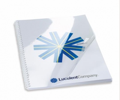 Az áttetsző előlap modern külsőt kölcsönöz a bekötött dokumentumnak és védi a lapokat a sérülésektől.
