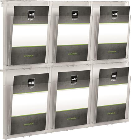 Prospektustartó, fali, A4, 6 rekeszes, HELIT "Placativ", átlátszó