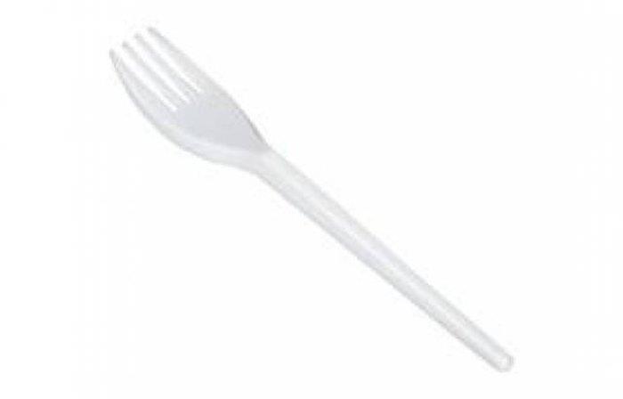 Fehér, műanyag eldobható villa, kerti partik, büfék és fesztiválok elengedhetetlen kelléke.