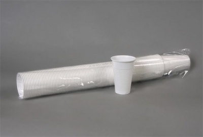 Egyszer használatos, eldobható műanyag pohár.